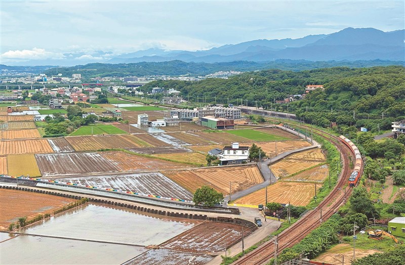 從「鄭漢紀念碑」俯瞰,可見火車行駛於鐵道的優美弧線。 圖/人間社記者王麒瑋