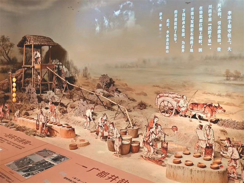 李冰開鑿廣都鹽井模型圖。圖/郭詠澧