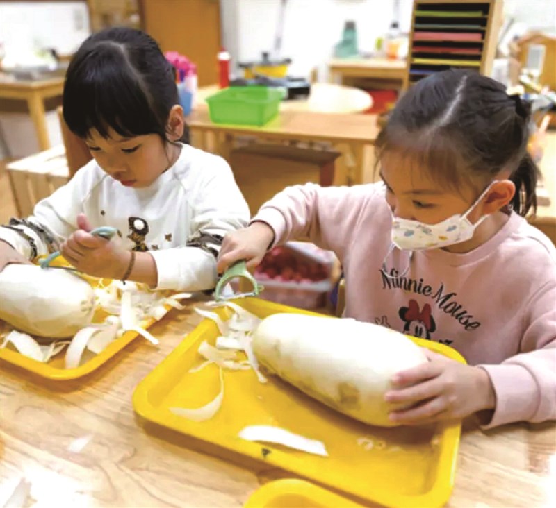 幼兒園本就是從生活出發的學習場域,孩子每日在園8小時,有兩次點心與午餐時間,將近兩小時跟吃相關。「今天學校吃什麼?可能影響到孩子整天的心情。」基於對孩子需求的觀察,老師們在設計課程時便以食農教育為主軸,循序漸進培養孩子面對未來生活的能力。