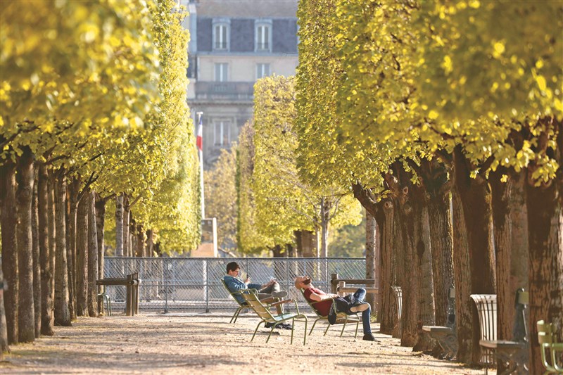 巴黎公園內享受日光浴的人。圖/法新社
