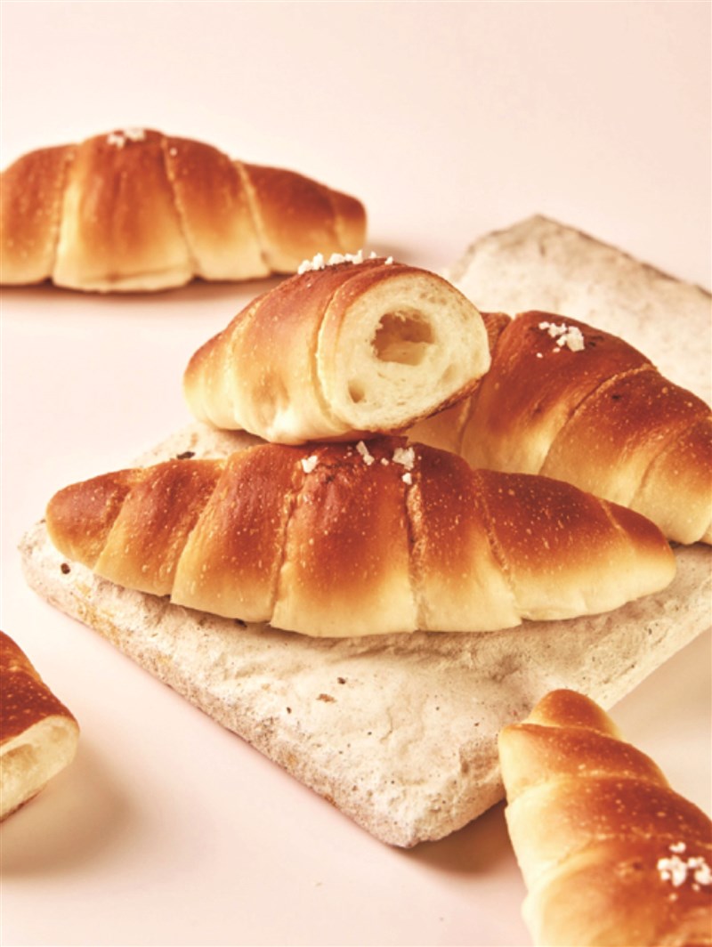 善菓旗下烘焙品牌「善菓屋」的人氣商品如「素漢堡」、「海鹽奶油捲」。圖/嚴心鏞、善菓餐飲集團提供