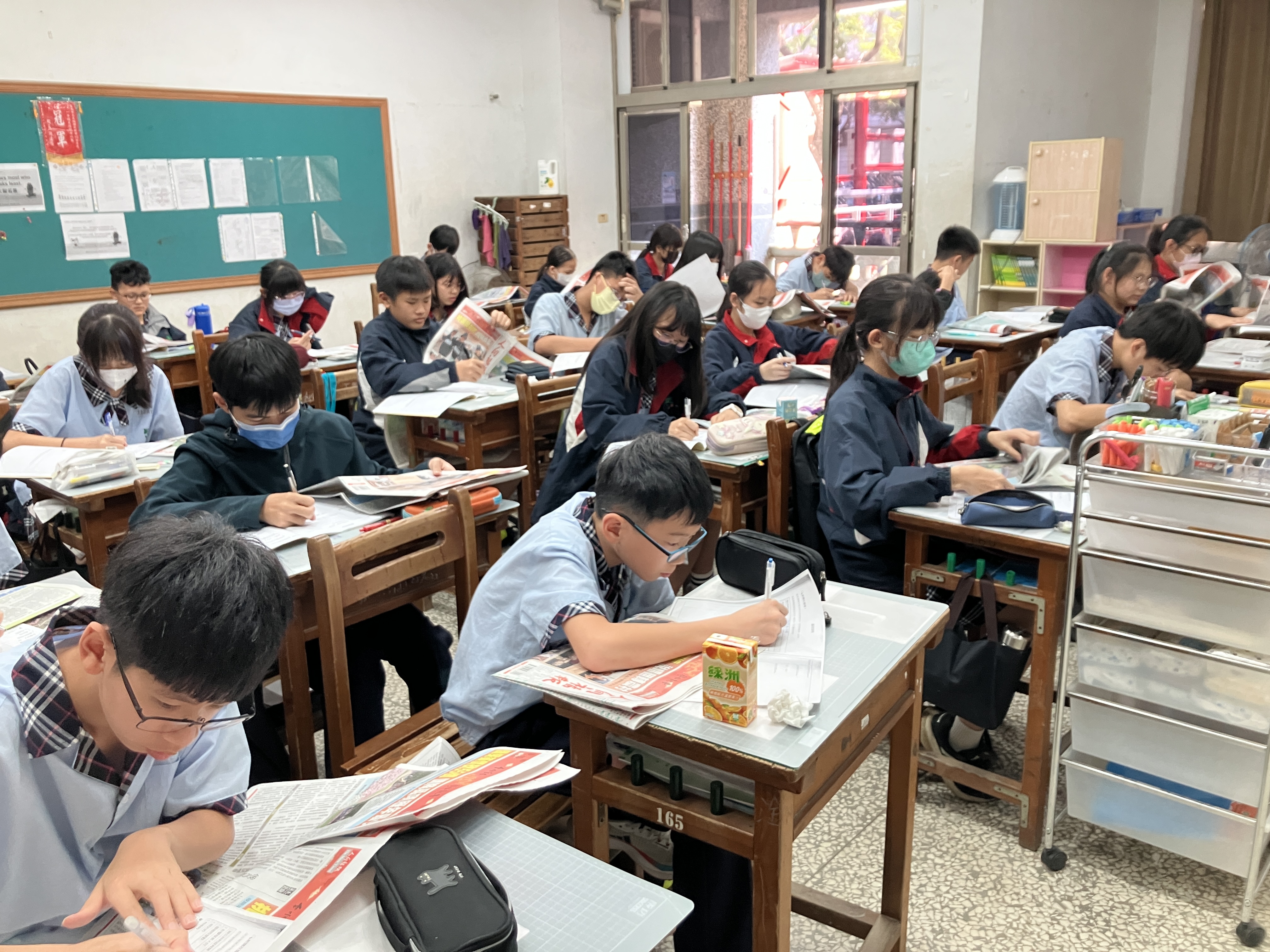 《人間福報》是一份充滿真善美的報紙,對於正處於狂飆期的國中生,可以提供一個心靈休憩、充實自我、涵養品德的地方。這一次我們特別融入閱讀課程的讀報單元進行深度閱讀,請學生選擇一篇報紙文章,透過「六何法」一一分析標明,再將內容串成一篇作為主播播報的簡短的文章,流暢、有邏輯之外還要重下標題。以下列舉部分範例: