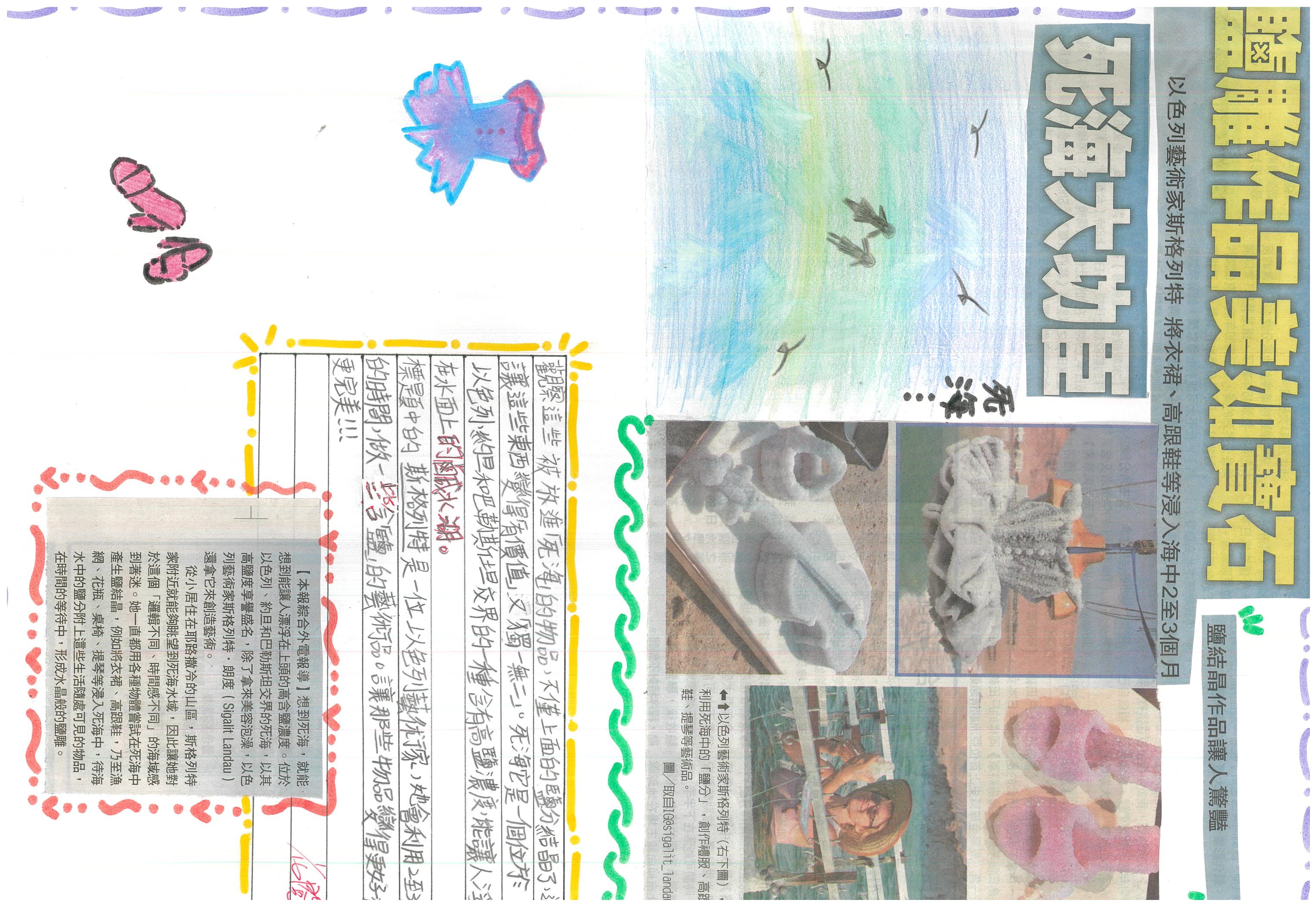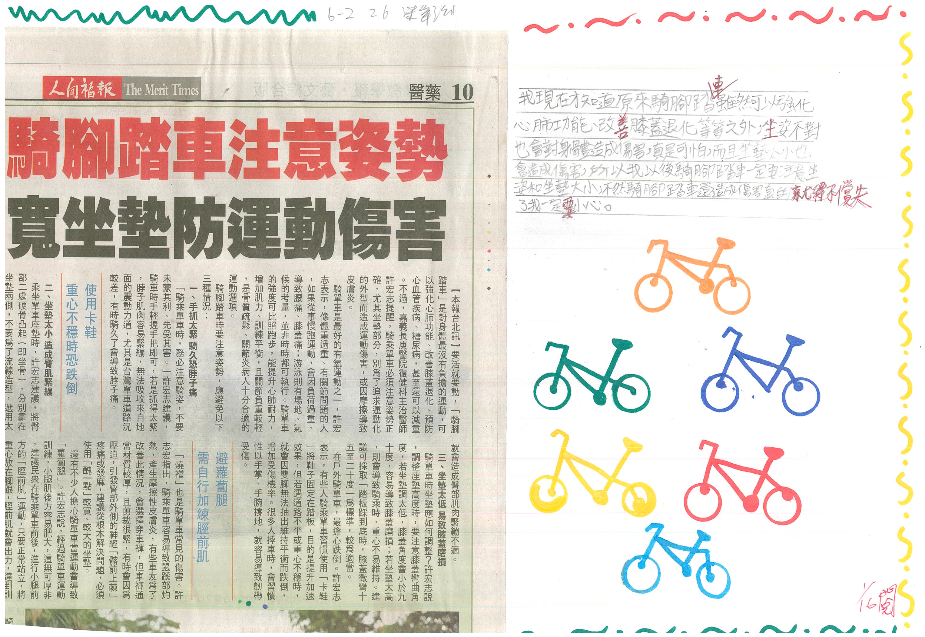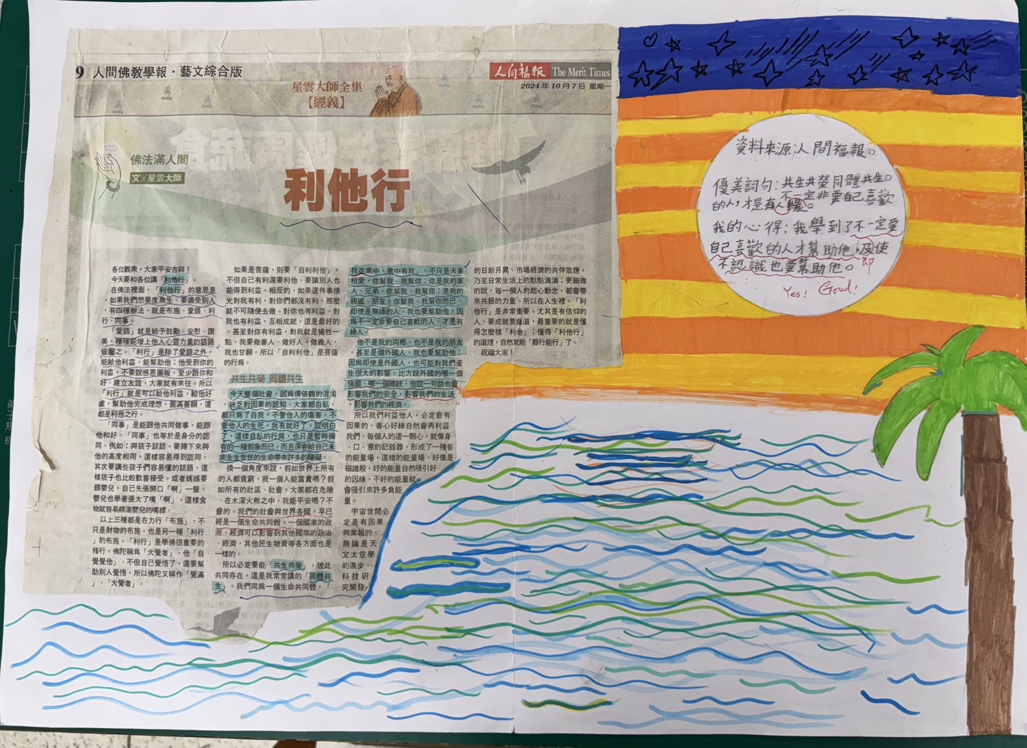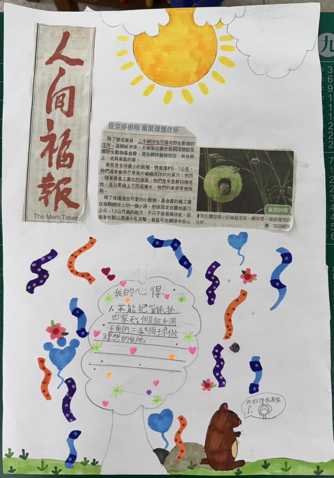 又到學期末的時候,最喜歡在這時候讓他們剪報回饋,檢視自己從這份報紙中學習到什麼?或試著讓他們將眼神的關注焦點從3C挪到《人間福報》上,即使是一個注視、一個瀏覽,這樣也算是功德圓滿的一件事了,畢竟文字的閱讀是需要從小的習慣培養。