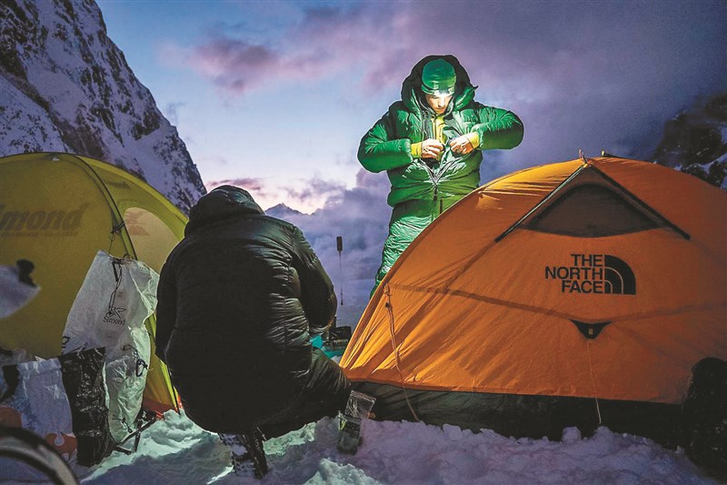 法國登山家維德林(左)與尚恩(右)首度攀登賈奴東峰,他們在登頂途中紮營。圖/法新社