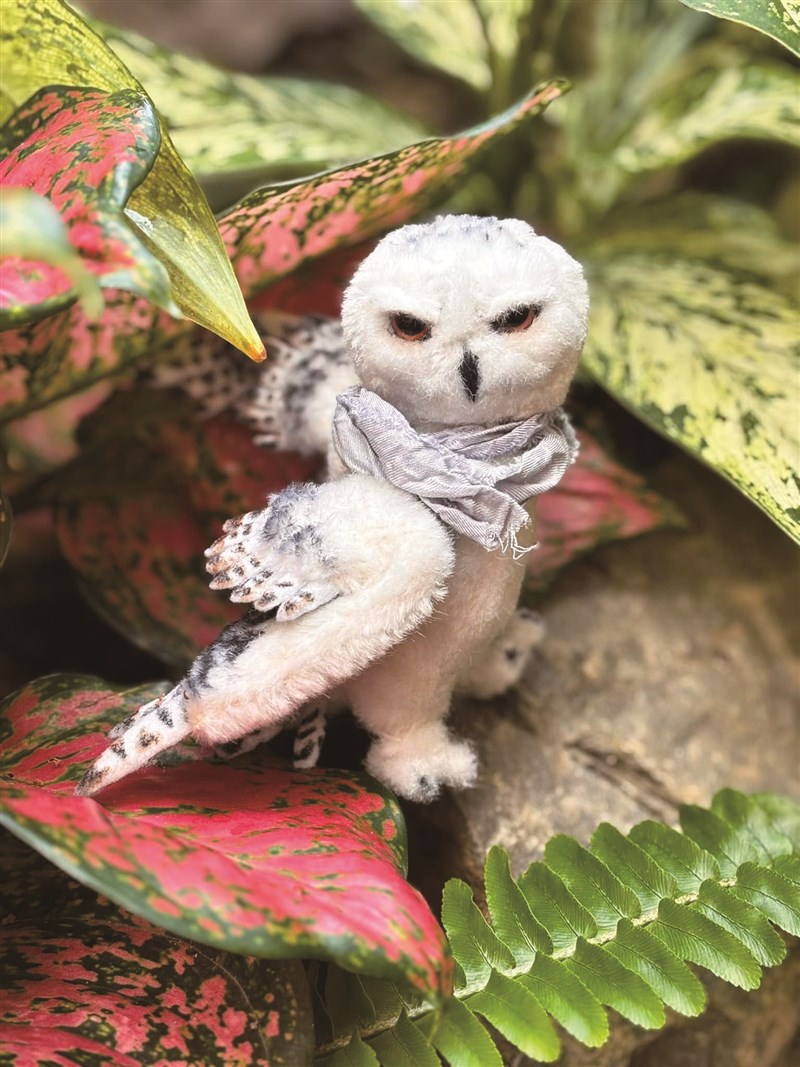 頭部可旋轉、眼皮可開闔、腿和腳爪可動的「雪鴞」玩偶。圖/異獸製造所提供
