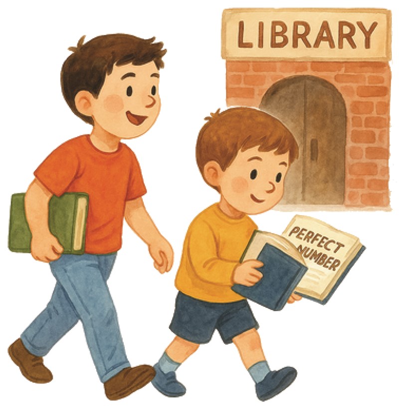 小明與阿傑對數字的奧祕及趣味產生濃厚興趣,兩人就一起到圖書館找書參考,又發現有一種「完美數」(perfect number),也叫作「完全數」或「完備數」。