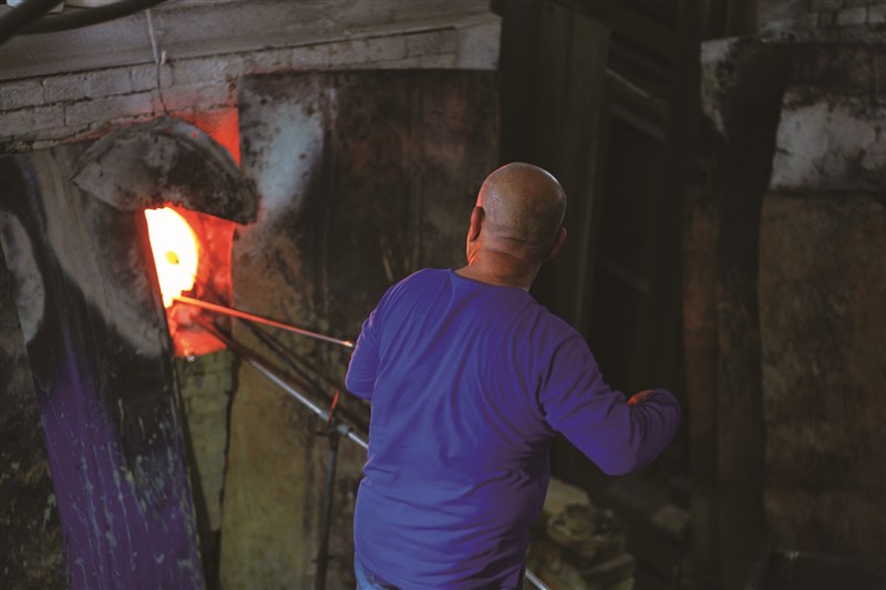 老師傅熟練於高溫的玻璃熔爐。圖/品味私塾