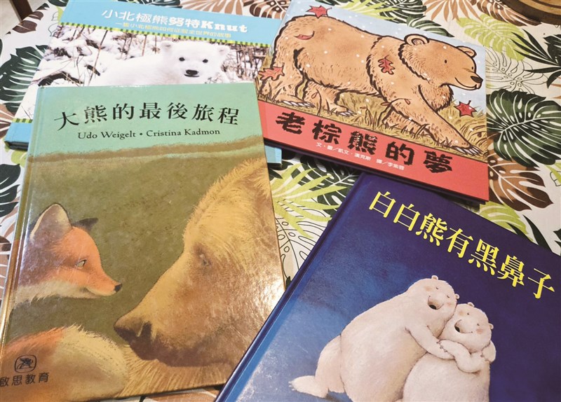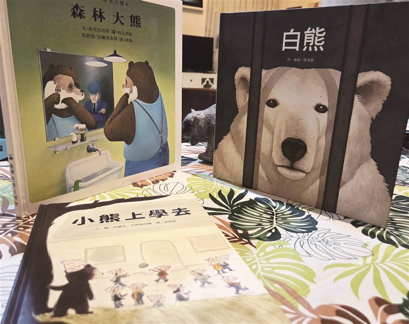 小熊老師經常朗讀的三冊熊繪本。圖/熊與貓咖啡書房照片提供
