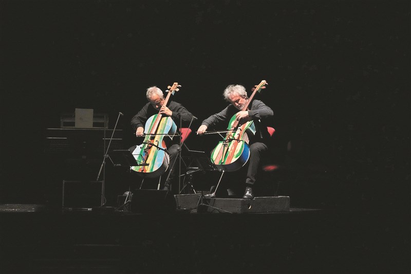 「海管弦樂團」成員去年2月在義大利米蘭,用移民渡海的廢棄船隻木頭所做的大提琴演奏。圖/美聯社