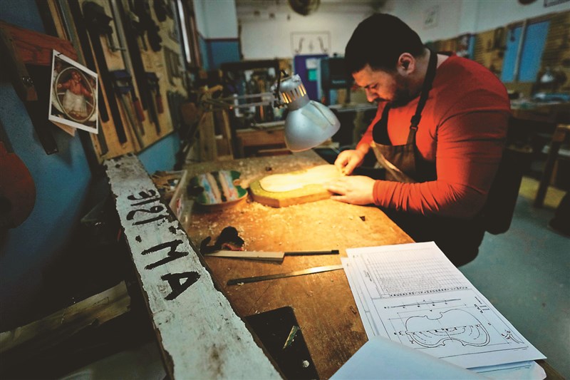 受刑人尼可拉正在製作小提琴面板。圖/美聯社