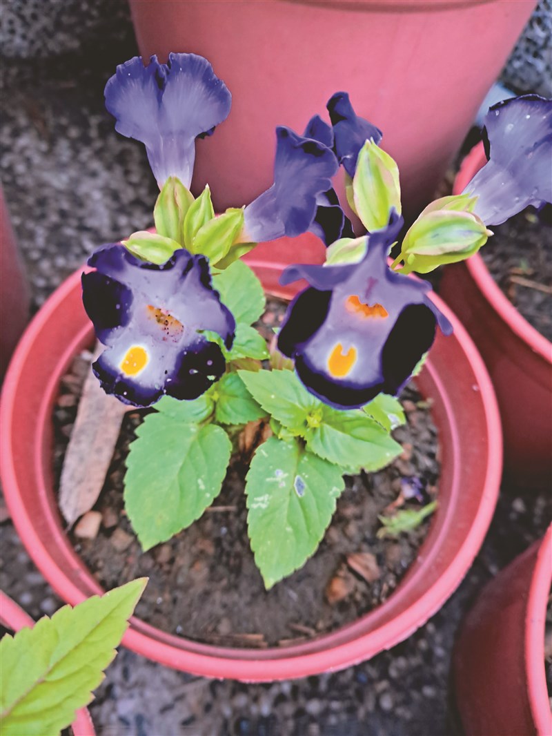 去年種的夏堇,只有黃、藍、紫三種單純的顏色,彷彿三位性格迥異的女子,各自舞出獨有的節奏與溫度。當花季落幕,我將那些細小的種子灑回盆土,像是把盛開後的光影收進掌心,藏起一段溫柔的記憶。未料,今年,記憶的顏色已悄悄變了模樣。