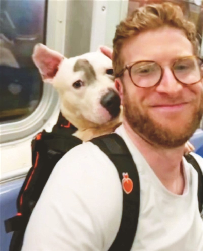 【本報綜合外電報導】在美國紐約,有人決定用最簡單且溫柔的方式,幫助流浪狗翻轉命運。布萊恩.瑞斯伯格(Bryan Reisberg)每周會選1天,把來自「紐約市動物關懷中心」(Animal Care Centers of NYC,簡稱ACC)的收容犬放進一個大背包,背包還會寫上明顯的「收養我(Adopt Me)」字樣,再背著牠們搭地鐵、逛街、散步,讓大家看見。與全國數千家收容所合作的最佳朋友動物協會說,過去6個月,已約有100隻狗獲領養。