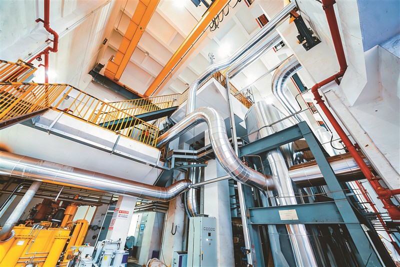 二氧化碳當燃料 中國大陸研究團隊利用「超碳一號」技術,將二氧化碳轉化為可循環利用的能源介質,開啟二氧化碳作為新型燃料的應用可能。圖為「超碳一號」主廠房內部。圖/新華社