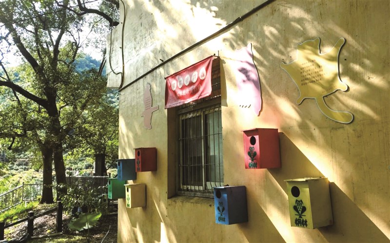 桐林里登山步道旁的動物剪影詩牆。圖/熊與貓咖啡書房